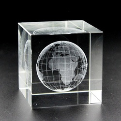 Custom 3D Laser Inciso Cubo di Cristallo Fermacarte Souvenir Incisione Terra Globo di Cristallo Blocco di Vetro Regali